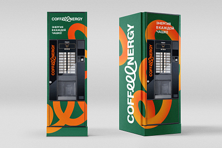 Яркость и динамичность стилеобразующего элемента помещают его в центр восприятия. А значит, можно менять фон без потери узнаваемости. Агентство доказало это, забрендировав три первых кофейных автомата в зеленом, оранжевом и фиолетовом цветах.