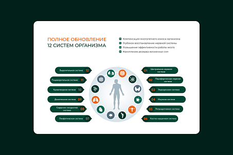 Fabula Branding провела комплексное исследование рынка, конкурентов и потребителей. На основе полученных данных был разработан дизайн сайта, который подчеркивает ключевые аспекты программы: научный подход, гармонию с природой и достижение целостного обновления организма.